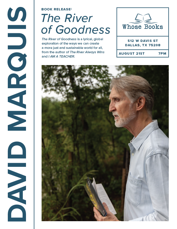 Whose Books welcomes local author David Marquis back for his latest book release The River of Goodness. Join us on August 21st for an author reading and book signing.