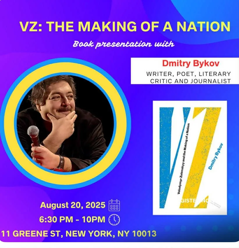 Join us for a lecture presented by Dmitry Bykov, a well-known Russian poet, novelist, journalist, and public intellectual, as he discusses his latest book VZ: Volodymyr Zelenskyy and the Making of a Nation, hosted by Nash Dom NYC.