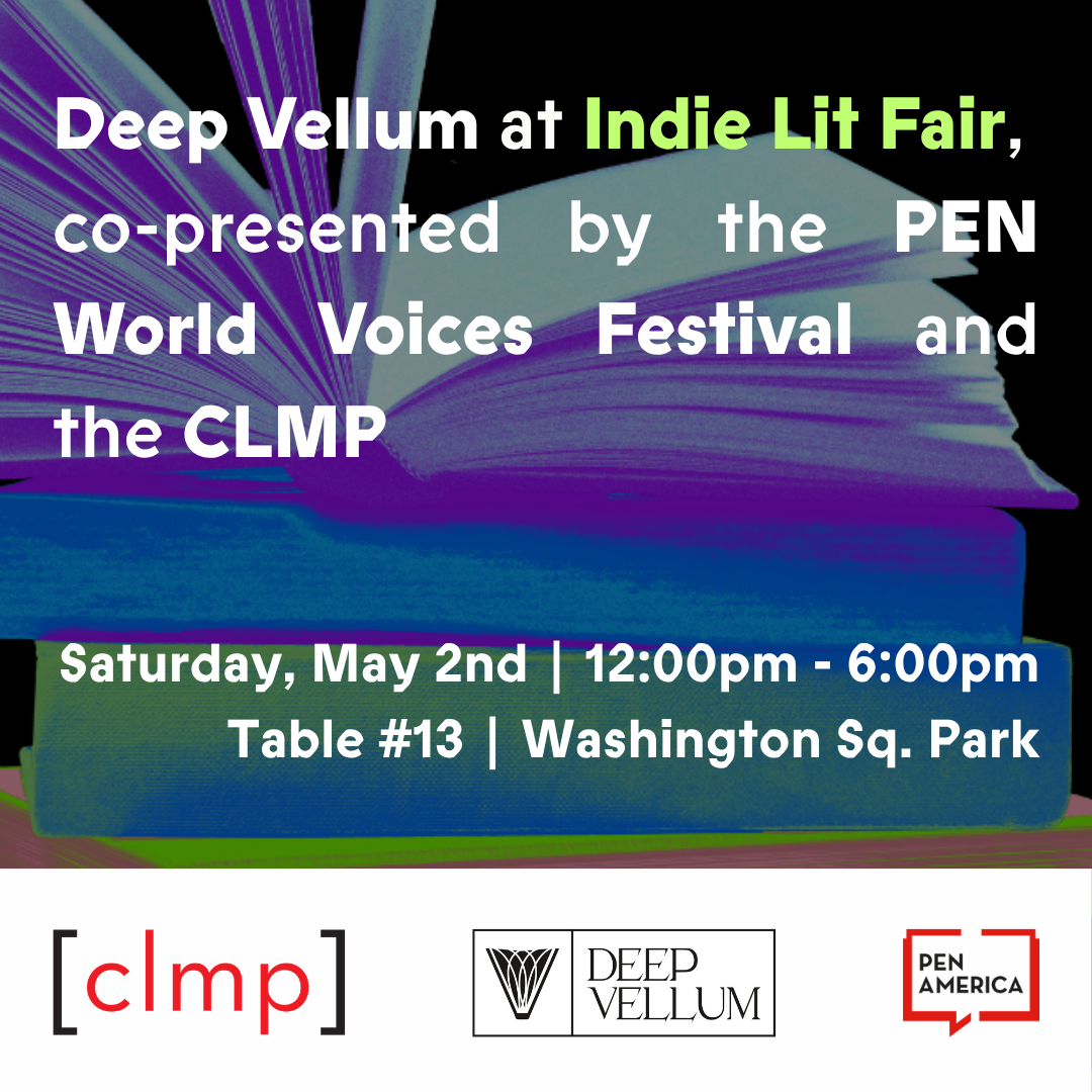 Deep Vellum & Dalkey Archive Press will be at the 2026 CLMP Indie Lit Fair in Washington Square Park on Saturday, May 2nd! Come check out titles from across our imprints, see some wonderful panels and readings featuring our authors and translators, and talk books with DV’c NYC-based team!